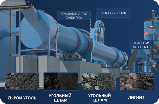 Сушилка для лигнита представляет собой вращающуюся барабанную сушилку. Это очень зрелое сушильное оборудование, производимое производителями горнодобывающего оборудования. Оно подходит для сушки угольного шлама, чистого угля и угля. Лигнита, чистого угля, шлама, магнитных, тяжелых и флотационных концентратов металлических и неметаллических минералов, а также глины в цементной промышленности. Оно характеризуется высокой производительностью и простотой эксплуатации.