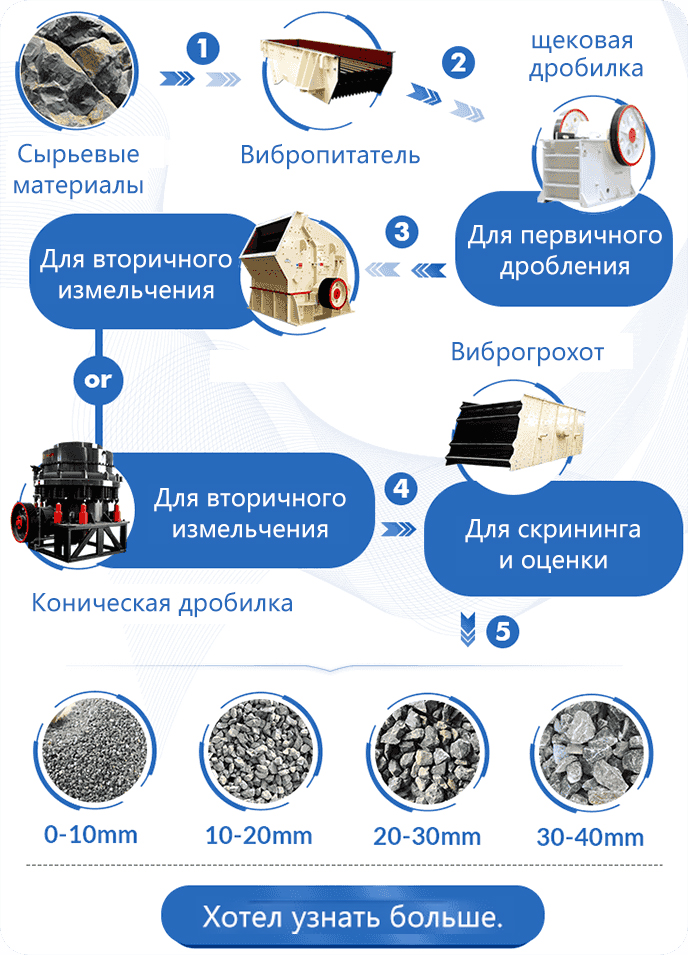 Каменодробильная установка обычно состоит из щековой дробилки, ударной дробилки или конусной дробилки, вибрационного грохота, вибрационного питателя, ленточного конвейера и т. д. Она используется для дробления и просеивания более 120 видов камней и горных пород. Используется в качестве заполнителя в различных отраслях промышленности, таких как строительство, автодороги, железные дороги и т. д.